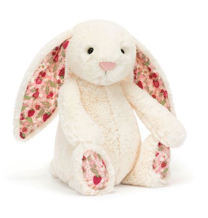 When she’s not fluffing cushions or arranging wildflowers, she’s swapping ideas with her cousin Blush Blossom Bunny – the finest fabric-finder at Jellycat’s grandest department store.